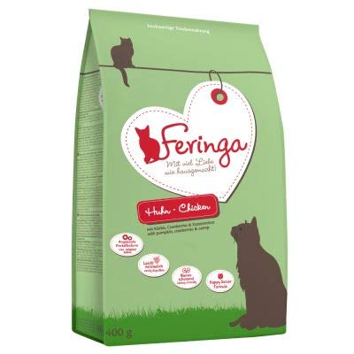 - Dieses kornfreie Feringa Senior Hühner-Trockenfutter wurde speziell auf die Bedürfnisse älterer Katzen abgestimmt.