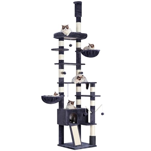 - 【MEHRSTUFIG】Bieten Sie Ihren Fellnasen endlosen Spaß mit diesem deckenhohen Katzenbaum. Mit 1 Ruheplattform, 3 Kletterplattformen, 2 Sisalstämmen, 1 Liegemulde, 1 Höhle und 2 Plüschbällen ist dieser Katzenturm perfekt für Haushalte mit mehreren Katzen