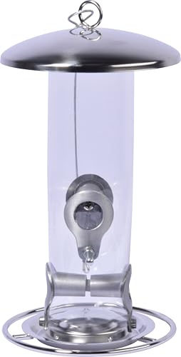 - 🐦 Die robuste Futterstelle besteht aus Metall und einer Acrylglasröhre und ist absolut wetterbeständig